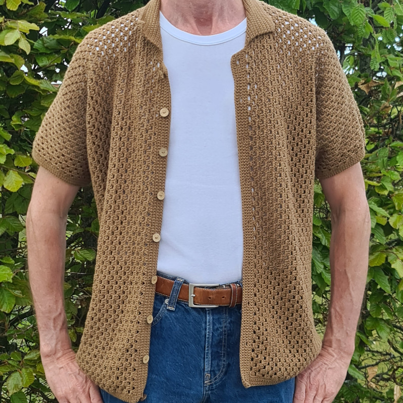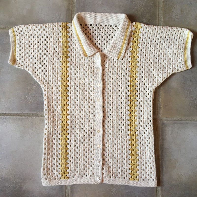 Hæklet, gennemknappet Poloskjorte i 5 størrelser - e-opskrift